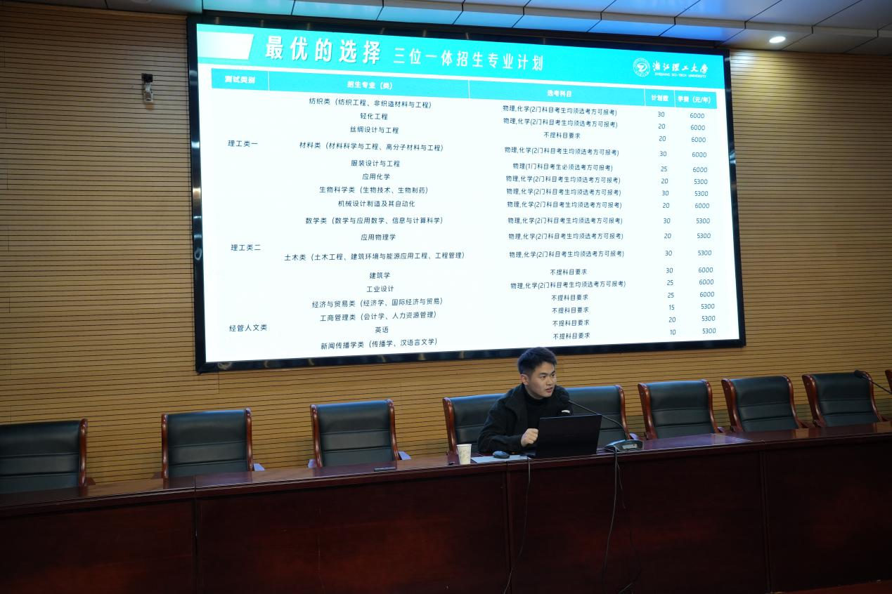董选国聚焦“三位一体”综合评价招生政策,从招生专业计划、报名条件、成绩计算等核心角度解读学校政策要点,针对学子们存在的疑问进行详细解答。鲍佳磊分享自身成长经历,他结合本科阶段的学习生活、科研成果以及保研历程等讲述了自己的成长与蜕变,现场氛围热烈。