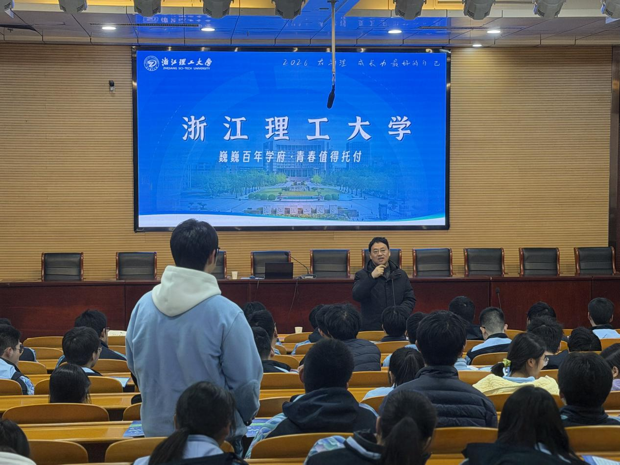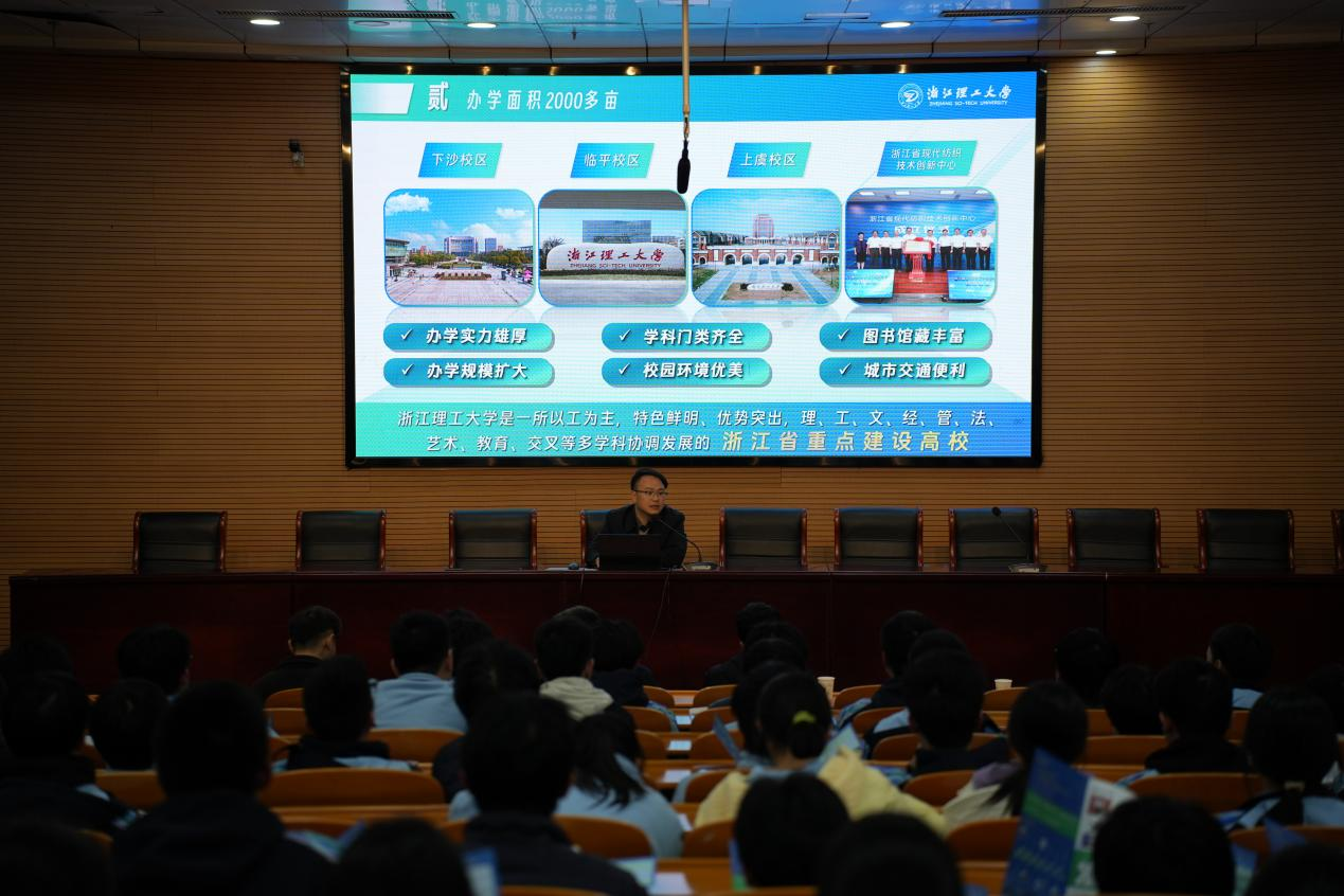 随后,王勇能向姜山中学师生详细介绍了浙江理工大学的整体办学情况,他围绕学校办学历史、师生规模以及学科竞赛成效等多个维度展开全面阐述,让在场学子对浙江理工大学有了系统、直观的认识。