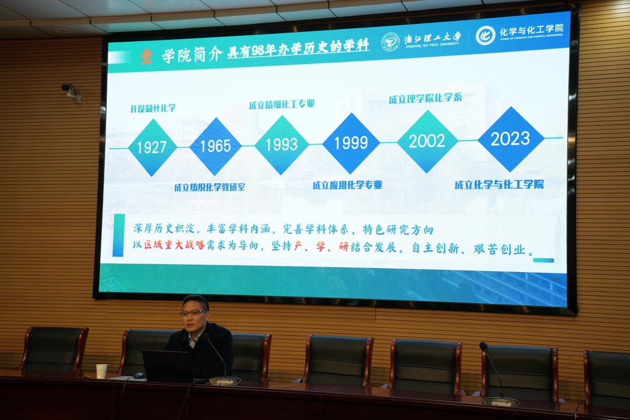 3月17日,化学与化工学院党委书记施鹏、院长祝诗发、党委副书记王勇能、学工办主任胡丽、辅导员董选国,携学院22级应用化学专业本科生鲍佳磊一行,前往浙江省一级重点中学——宁波姜山中学,开展“三位一体”招生宣传暨学科宣传活动。