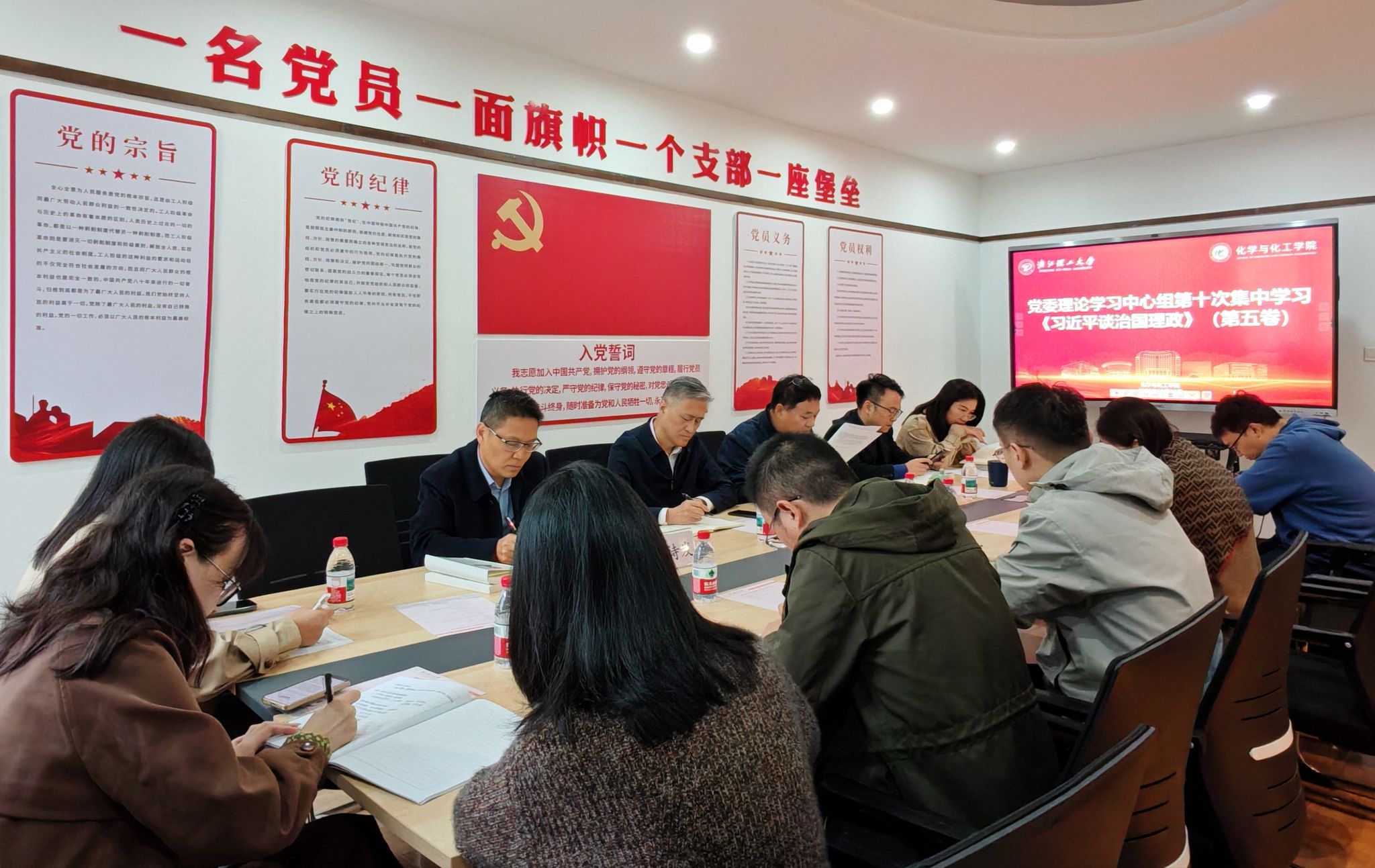 10月30日下午,化学与化工学院党委召开理论学习中心组会议,围绕《习近平谈治国理政》第五卷开展专题学习。校党委委员、纪委书记陈正奎到会巡听指导。学院党委书记施鹏主持会议,学院理论学习中心组全体成员参加会议。