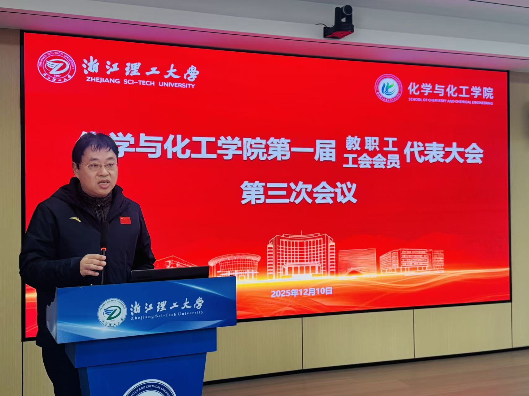 他对学院未来工作提出几点希望:一是要深入学习宣传贯彻好党的二十届四中全会精神,要聚焦“为党育人、为国育才”,注重把学习成效转化为推动学院高质量发展的强大动力;二是要扎实推进“一级学科博士点”的申报准备工作,要围绕申报需求,凝聚共识,抢抓机遇,力争突破制约学院发展的“瓶颈”问题;三是广大教职工要认真履行职责,集思广益,科学高效务实谋划好学院“十五五”发展规划,既要注重与学校的发展规划有机衔接,也要突出学院发展的目标特色;四是工会要始终秉持“维护职工合法权益、竭诚服务职工群众”的核心使命,提升好履职能力,充分调动全体教职工的积极性与创造性,推动化学与化工学院在“十五五”的新征程中实现更快更好更高发展。