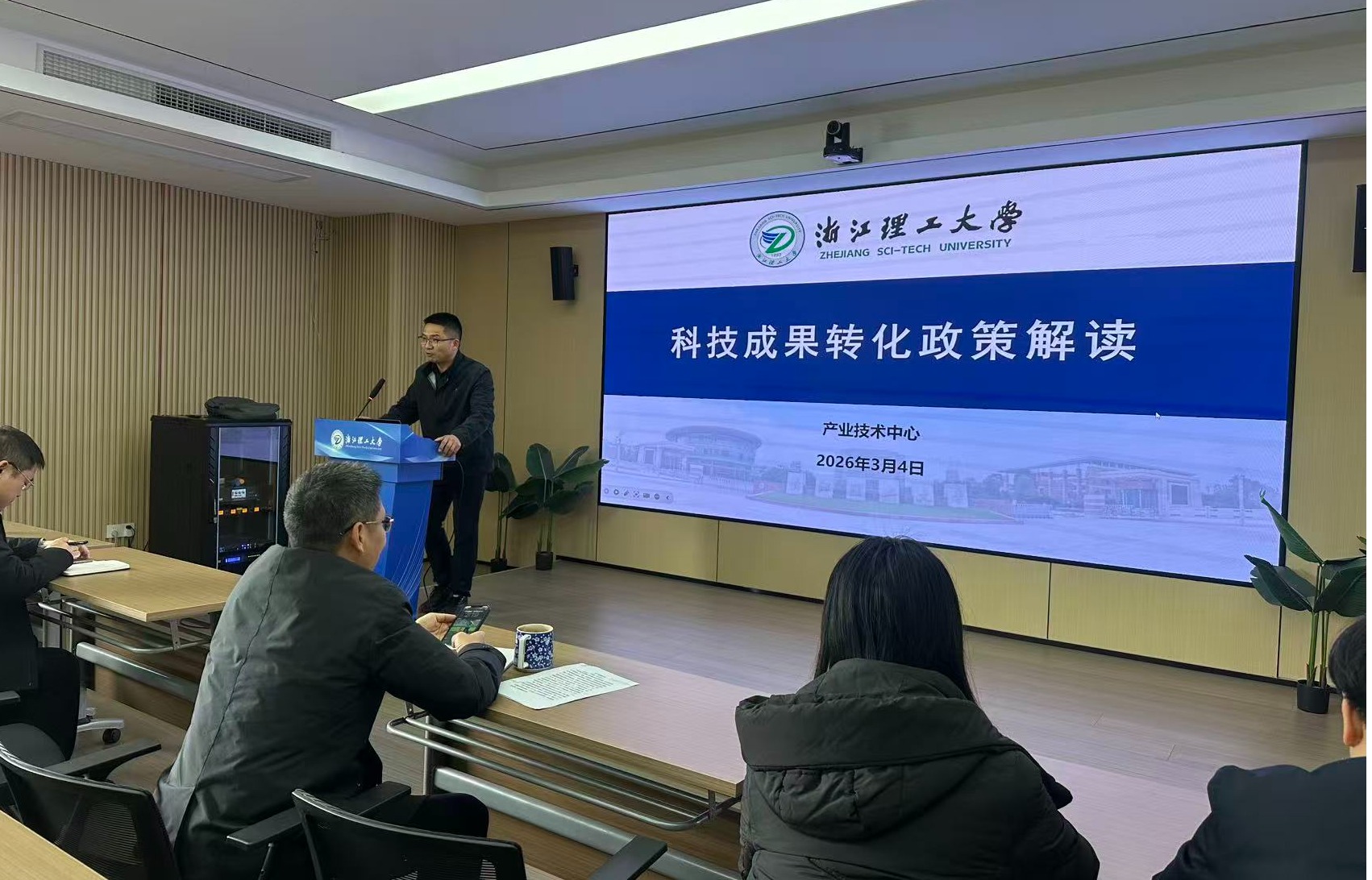随后,产业技术中心副主任张义玲为学院全体教职工做科技成果转化相关政策解读。
