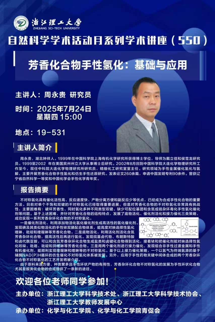 【学术讲座】芳香化合物手性氢化:基础与应用