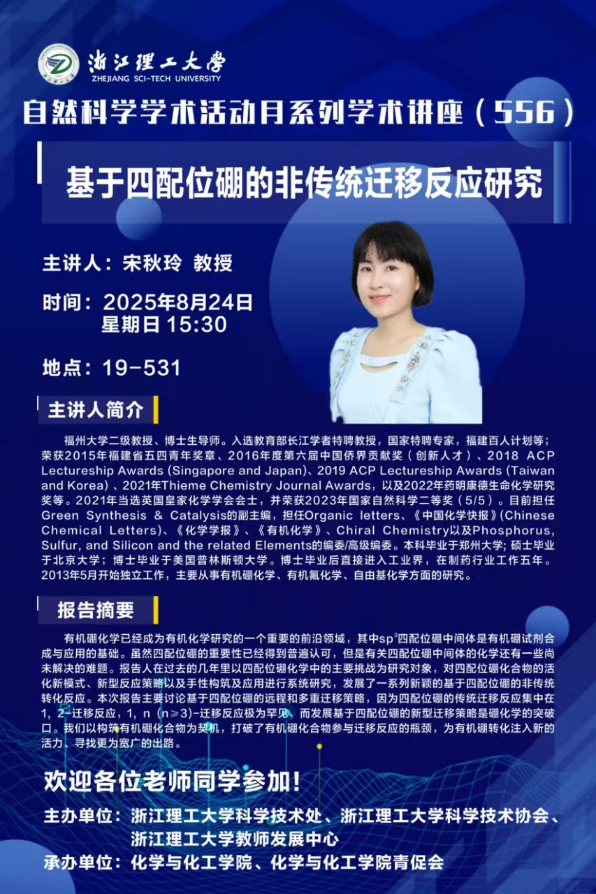 【学术讲座】基于四配位硼的非传统迁移反应研究